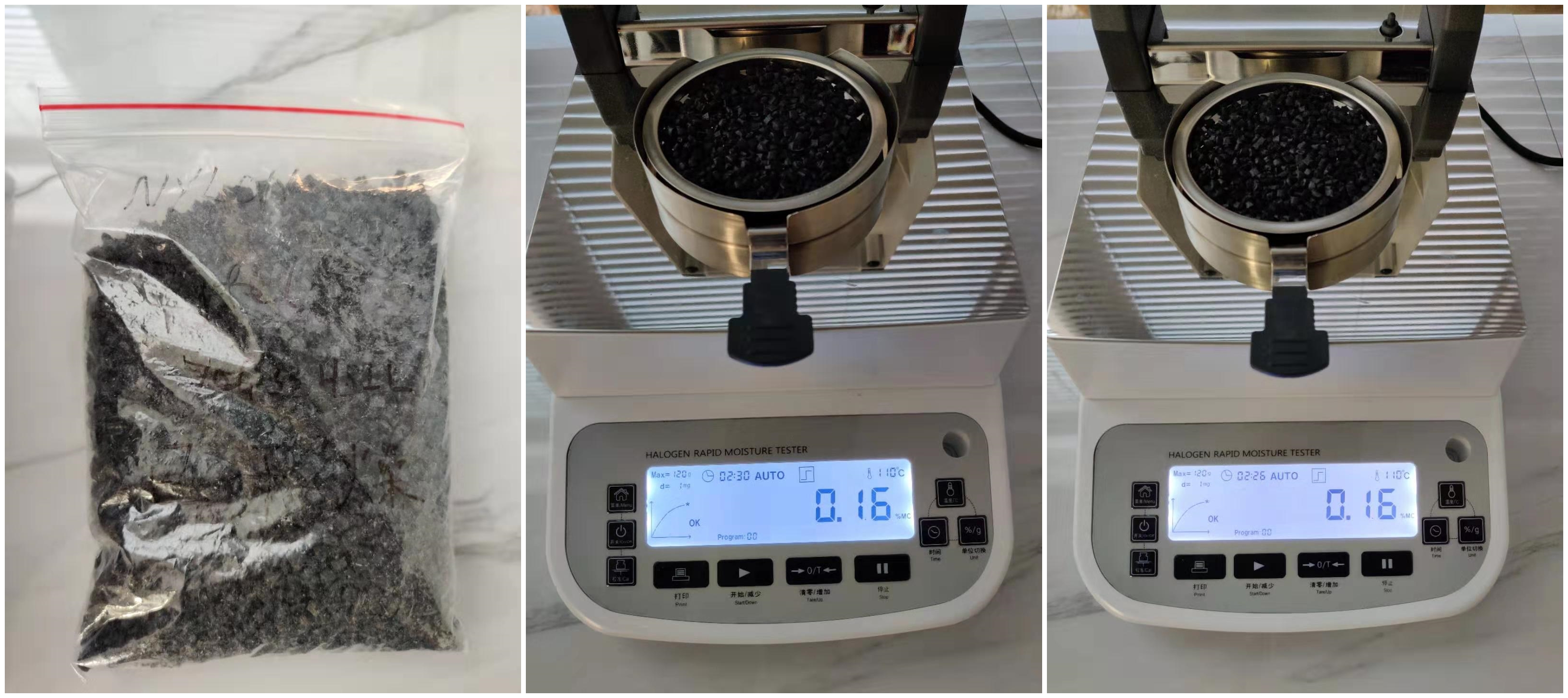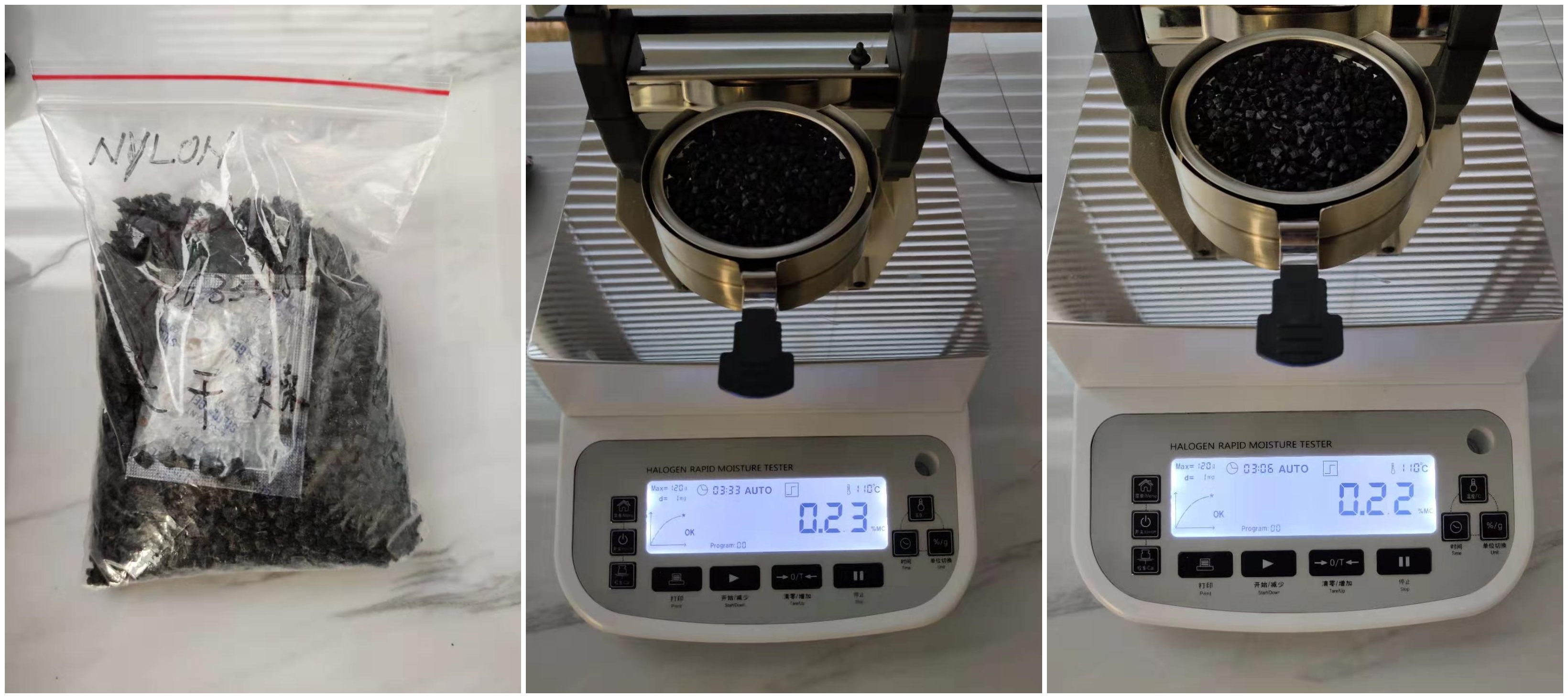 今天我們將對客戶寄送的干燥前后的尼龍顆粒進(jìn)行水分測試,雖然在寄送過程中放置了干燥劑但尼龍顆粒還是會進(jìn)行少量吸水,我們通過測試看看是否能檢測出其中含水量的區(qū)別。
