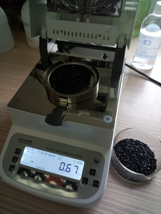 再生尼龍水分測試儀使用方法?? 測試再生尼龍顆粒:倒出8克左右再生尼龍料顆粒倒在不銹鋼托盤中,為了使測試過程中…