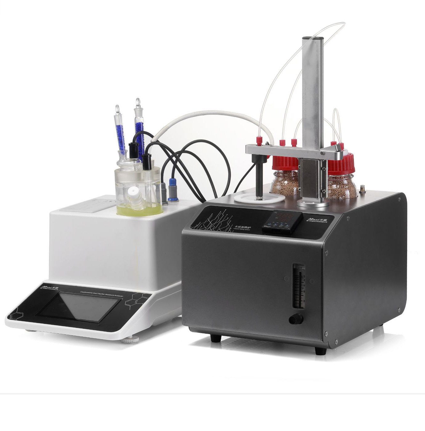 - 采用高精度庫侖法水分測定儀與卡氏加熱爐聯(lián)用,最低可以檢測到3μg水,精度達(dá)到ppm級
